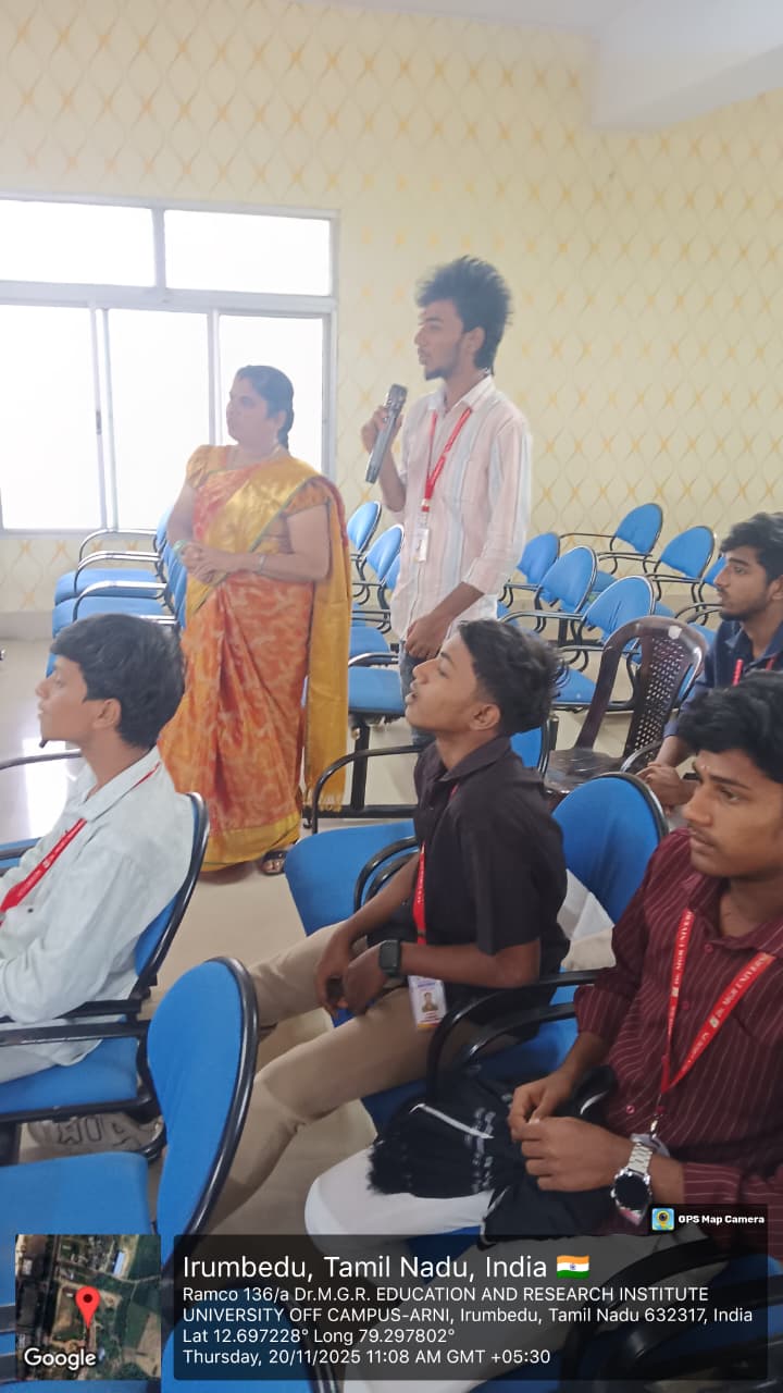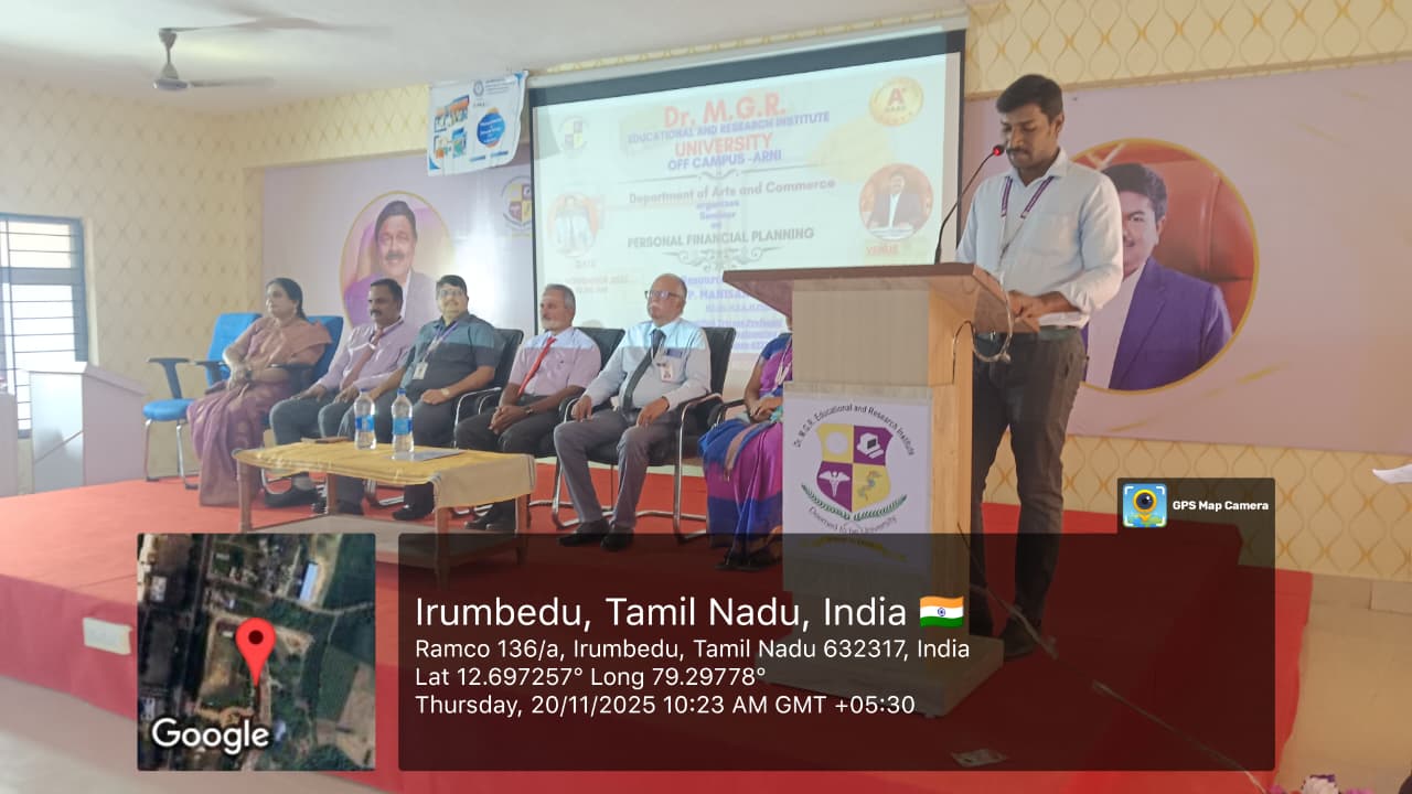 The Department of Arts and Commerce, Dr. M.G.R. Educational and Research Institute, Off Campus – Arni, organized a one day Seminar on Personal Financial Planning on 20th November 2025 (Thursday). The event was conducted at the Auditorium, 2nd Floor, and commenced at 10:00 AM.