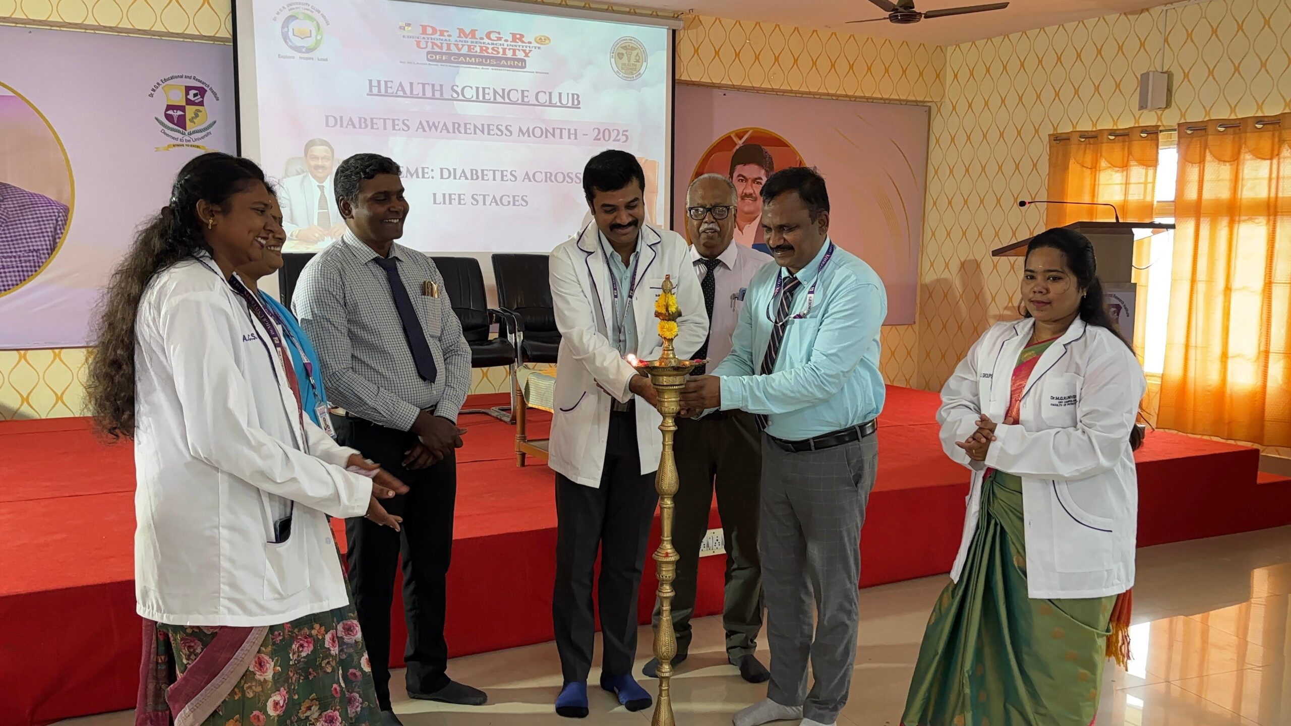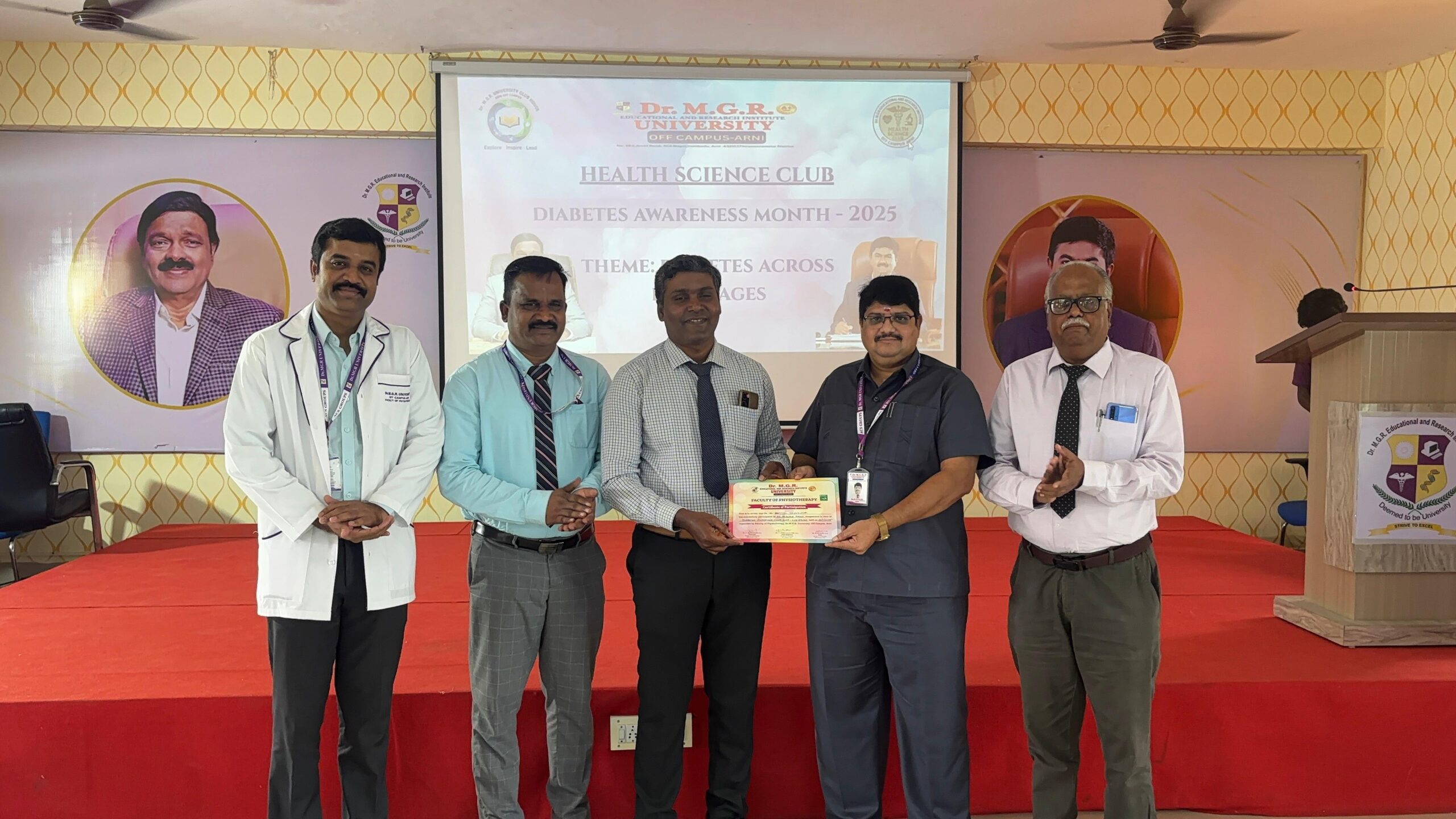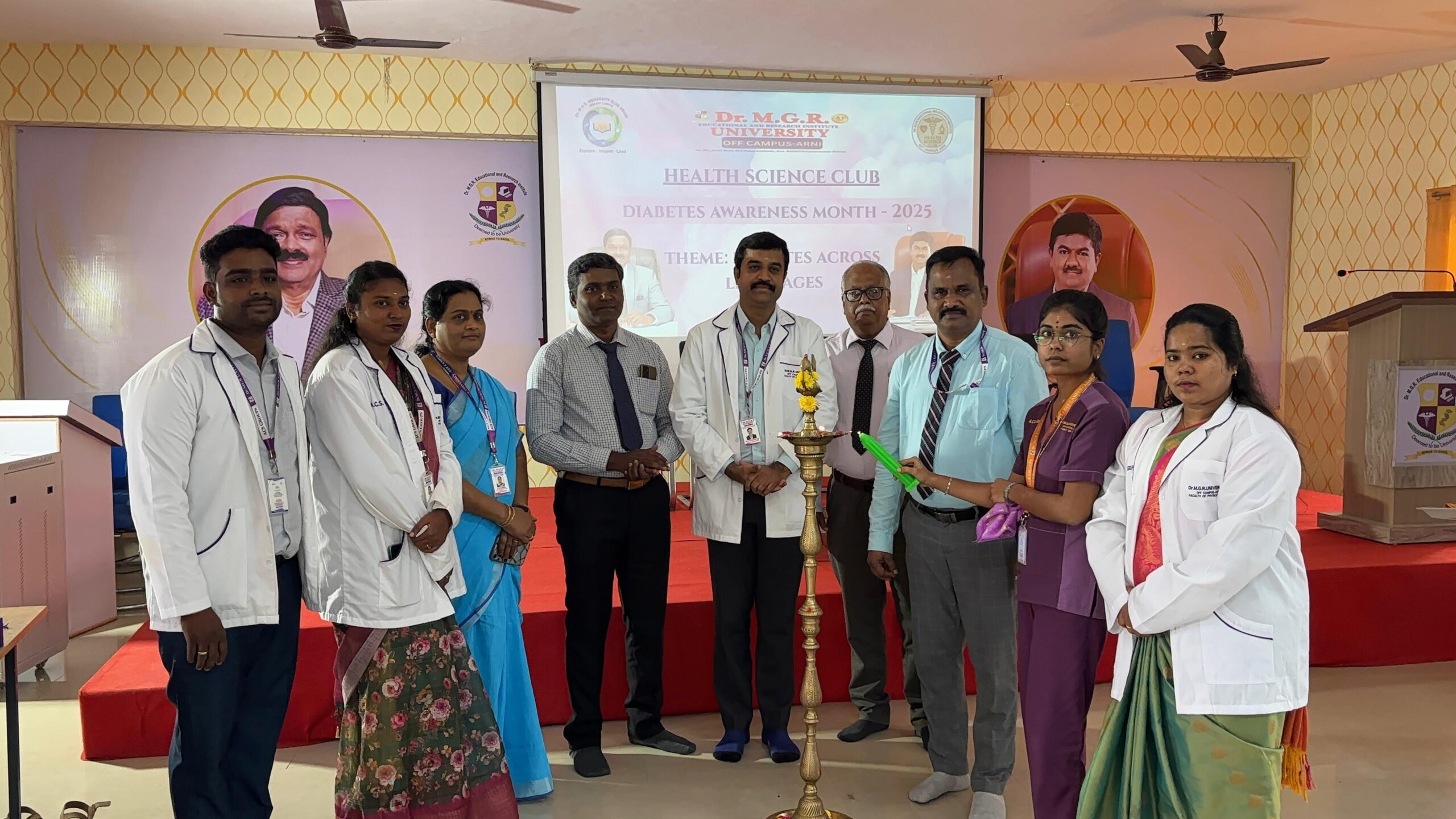 The World Diabetes Day 2025 event, organized by the Health Science Club at Faculty of Physiotherapy, Off Campus Arani, targets health science students including physiotherapy undergraduates and postgraduates. It features an expert talk by Dr. Jeyakumar D.Pharm, BPT, MPT (Ortho), MSc ( Microbiology) MBA ( Hospital), D. Yoga Therapy, D.Acu, MD ( ACU), RMP ( Alternative Medicine ), PGD bio statistics, MSW ( Medical social worker), PhD ( Physiotherapy), Post Doctoral Fellowship ( Physiotherapy) on “Diabetes Across Life Stages” and student speeches in English and Tamil, promoting interdisciplinary health awareness.