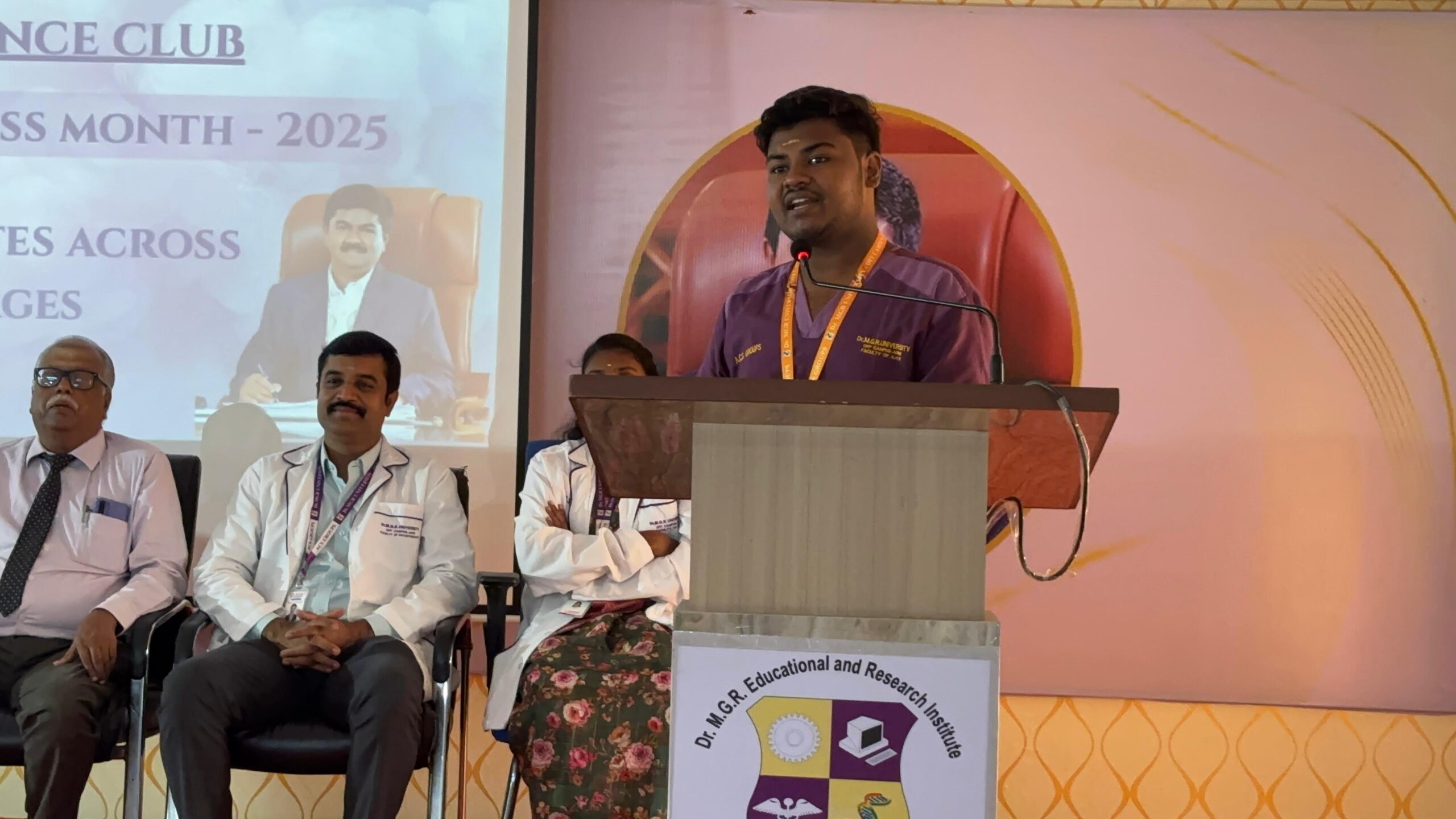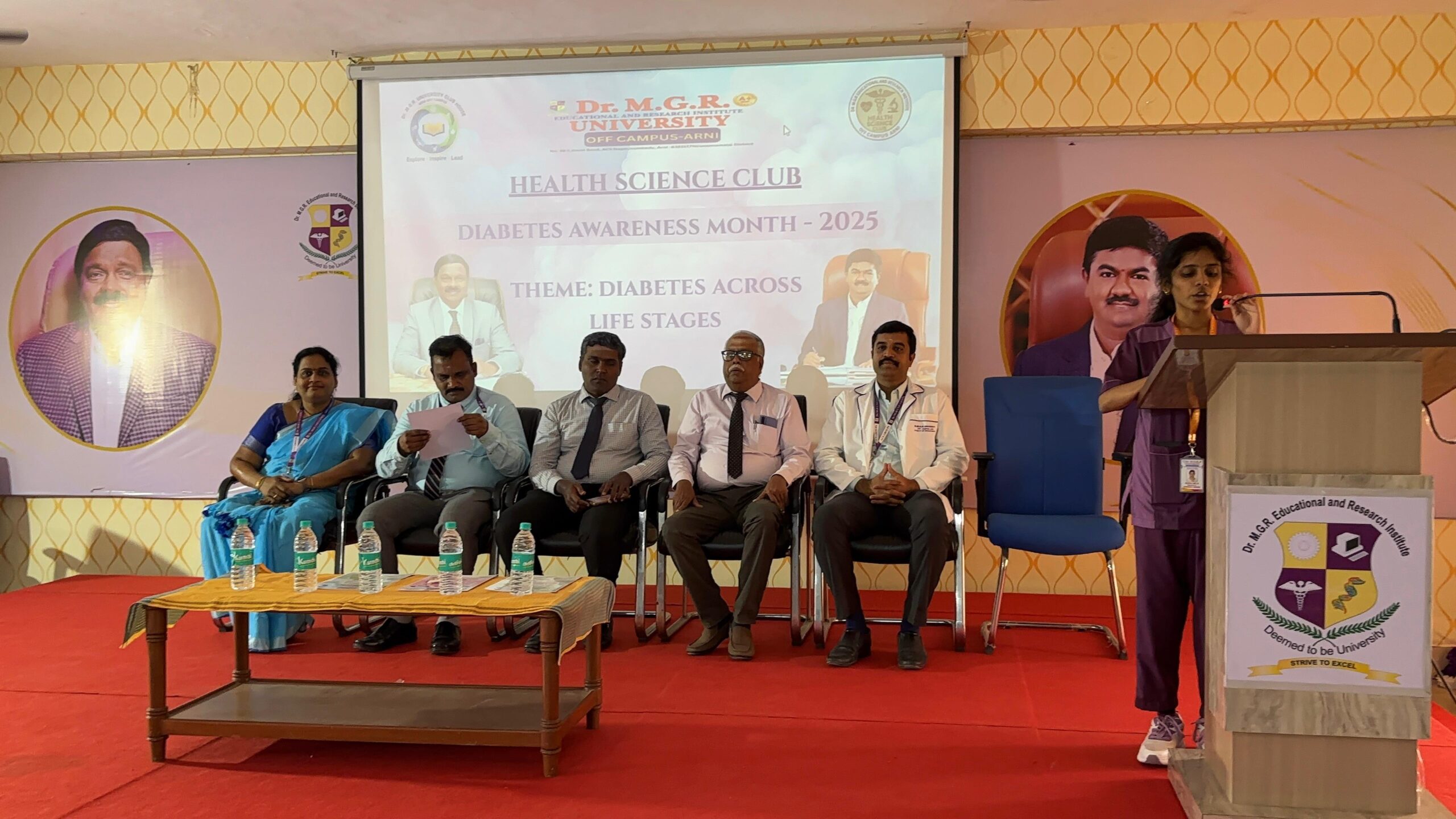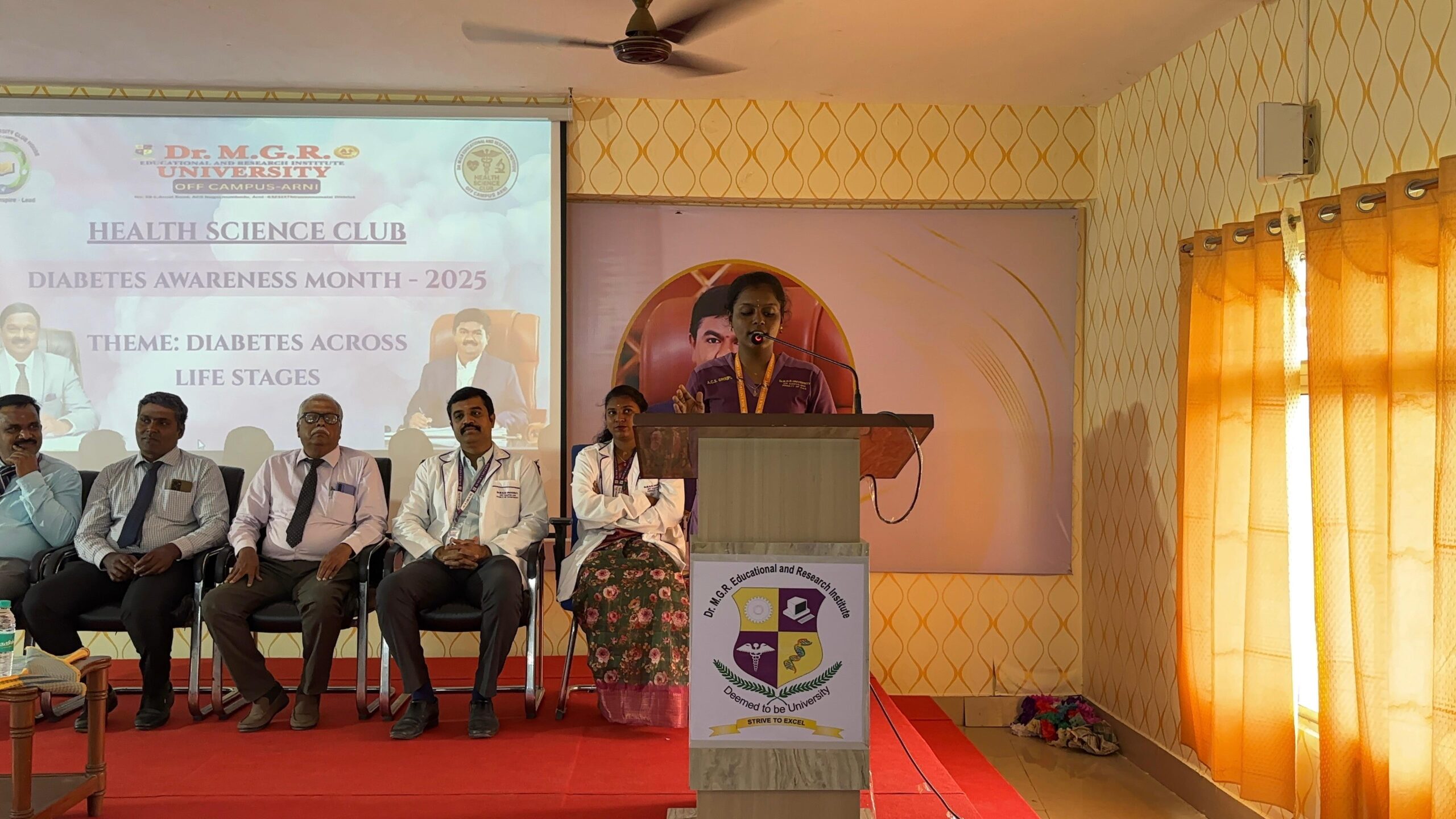 The World Diabetes Day 2025 event, organized by the Health Science Club at Faculty of Physiotherapy, Off Campus Arani, targets health science students including physiotherapy undergraduates and postgraduates. It features an expert talk by Dr. Jeyakumar D.Pharm, BPT, MPT (Ortho), MSc ( Microbiology) MBA ( Hospital), D. Yoga Therapy, D.Acu, MD ( ACU), RMP ( Alternative Medicine ), PGD bio statistics, MSW ( Medical social worker), PhD ( Physiotherapy), Post Doctoral Fellowship ( Physiotherapy) on “Diabetes Across Life Stages” and student speeches in English and Tamil, promoting interdisciplinary health awareness.